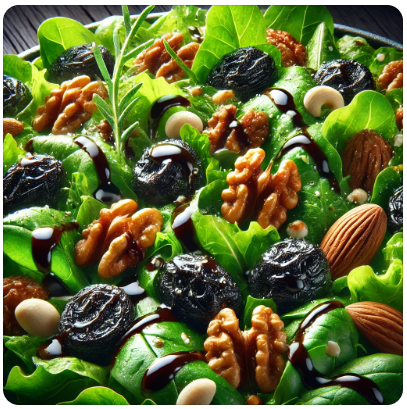 푸룬을 샐러드에 추가하면 식감과 맛이 한층 더해집니다. 푸룬, 견과류, 시금치, 그리고 발사믹 드레싱을 이용해 건강한 샐러드를 만들 수 있습니다. 푸룬의 달콤함과 견과류의 고소함이 어우러져 균형 잡힌 맛을 제공합니다.
