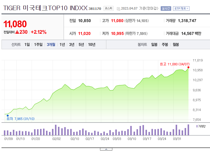 제가 오랫동안 보유하고 있는 주식 중에 TIGER 미국테크TOP10 (381170)이 있습니다.
