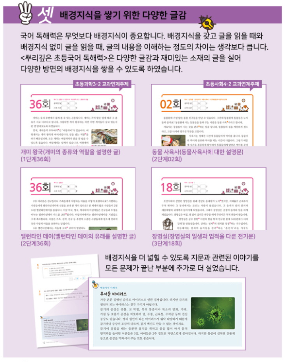 뿌리깊은 초등국어 독해력 1단계와 2단계 (초등1,2학년) 책소개, 교재의 리뷰와 답지 입니다.