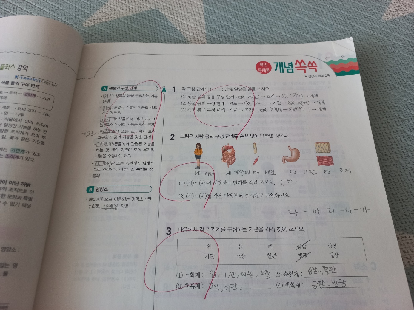 과학도 어차피 암기를 해야 하고 자신이 알고 있는지 모르고 있는지 테스트하는 과정에서 꼭 필요한 책입니다. 학원 다니지 않고 스스로 자기주도학습 하기에 정말 딱입니다. 학원에 메이지 않고 할 수 있도록 옆에서 격려하고 엄마도 같이 공부했습니다.