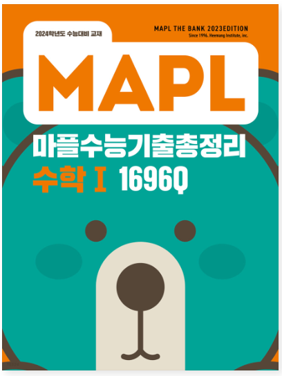 마플 수학1의 경우 1696 문제가 수록되어 있습니다. 아마 시중 수학1 기출문제집 중에 가장 많은 문제가 수록되어 있는 기출문제집일 것 입니다. 추천합니다!