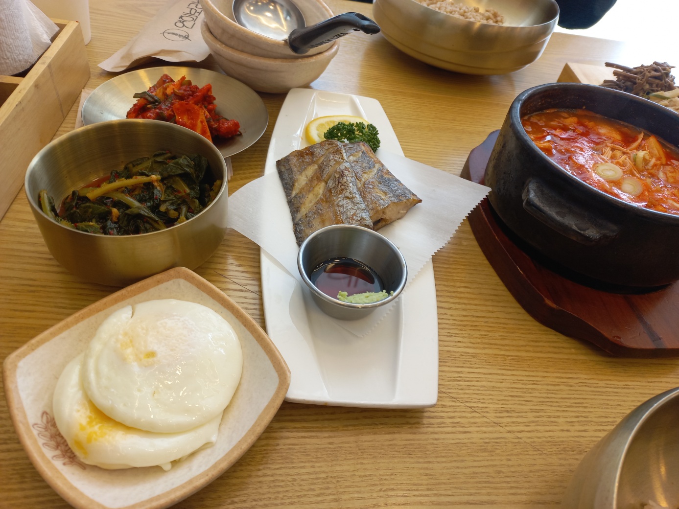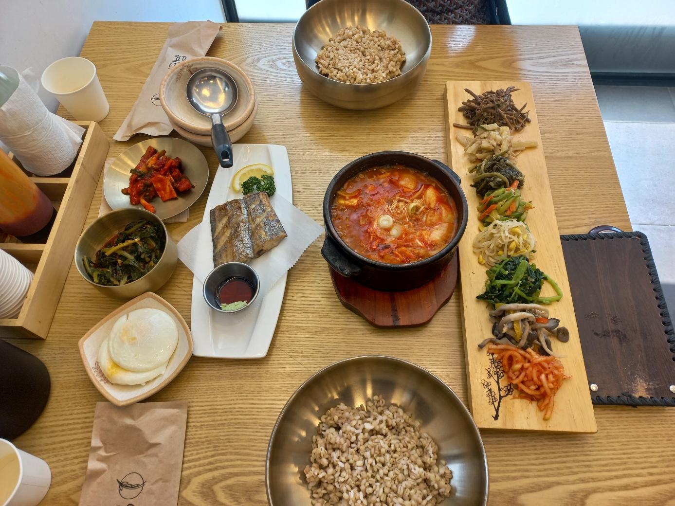 저희는 오픈시간인 11시에 맞춰 방문했는데 12시전에 모든 테이블이 꽉 차는 것 보고 여기가 연희동 가성비 1등 식당이 맞구나 실감하게 되었습니다. 아래에는 2인 상차림 사진이고요 맛있게 식사 후 후식으로 식혜와 한과자도 있더라고요. 맛있게 식사하고 나왔고요 어머니께서 명함이랑 오픈 시간 챙기는 것 보고 여기가 맘에 드시는구나 판단할 수 있었습니다.