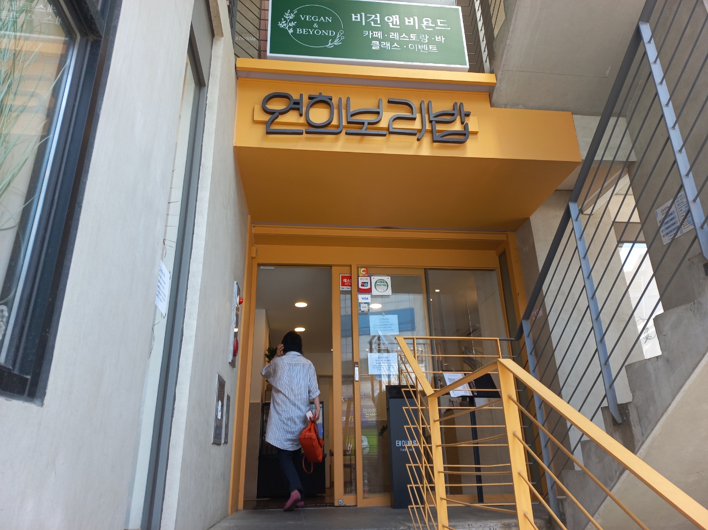 반지하에 다른 식당이 하나 있어서 계단을 올라가야 나오는 건물 1층에 위치하고 있습니다.