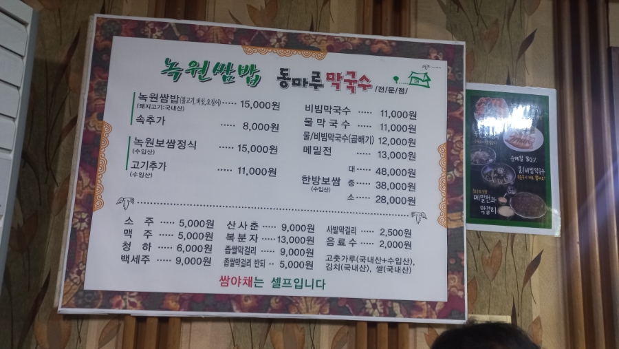 저는 아주 옛날은 아니고 몇년전쯤 12500원때부터 다녔는데 지금은 주력메뉴인 녹원쌈밥,녹원보쌈정식은 15000원이 되었네요