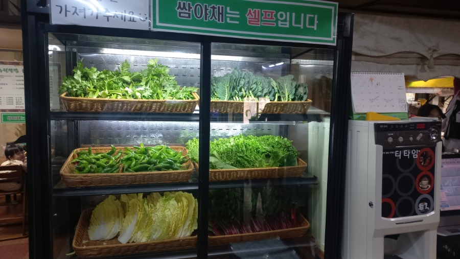 쌈야채 셀프 냉장고인데 저는 이런걸 처음봤어요