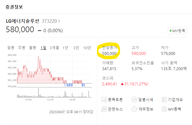 제가 아주 소액으로 주식을 하고 있는데 그중 한 종목이 바로 LG엔솔입니다.