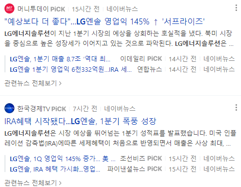 오늘은 LG엔솔 어닝서프라이즈 뉴스가 도배가 되었네요.