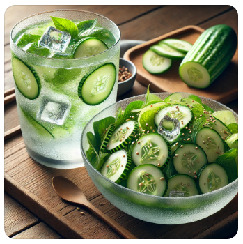 오이는 약 95%가 수분으로 이루어져 있어, 체내 수분 보충에 매우 유리합니다. 여름철 갈증 해소와 수분 보충에 특히 좋으며, 피부를 촉촉하게 유지하는 데도 도움이 됩니다. 수분을 충분히 섭취하면 피로 회복에도 효과적입니다.
