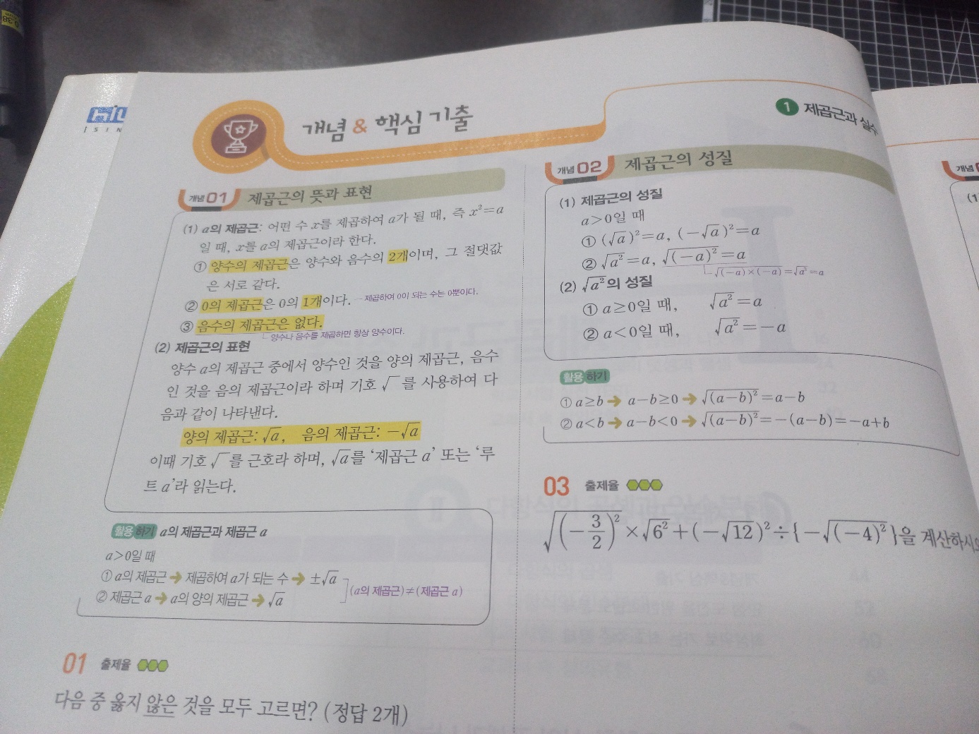 * 교과서 핵심 개념 - 중단원별로 출제 빈도가 높은 핵심 개념이 깔끔하게 정리되어 있네요. 문제 해결을 위해서 꼭 이해하고 암기해야 할 기본적인 개념 및 공식들입니다.