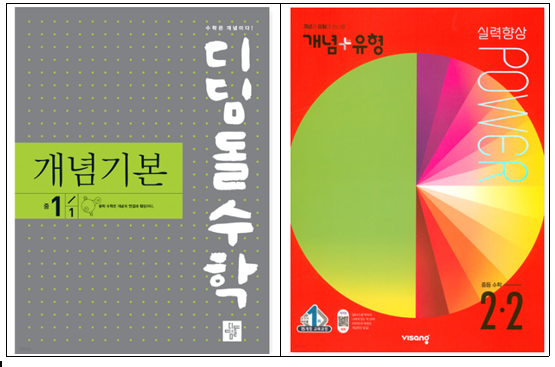 제가 경험한 강남지역 학원가의 중등부 수학 첫 교재는 대부분 개념+유형(파워)였습니다.