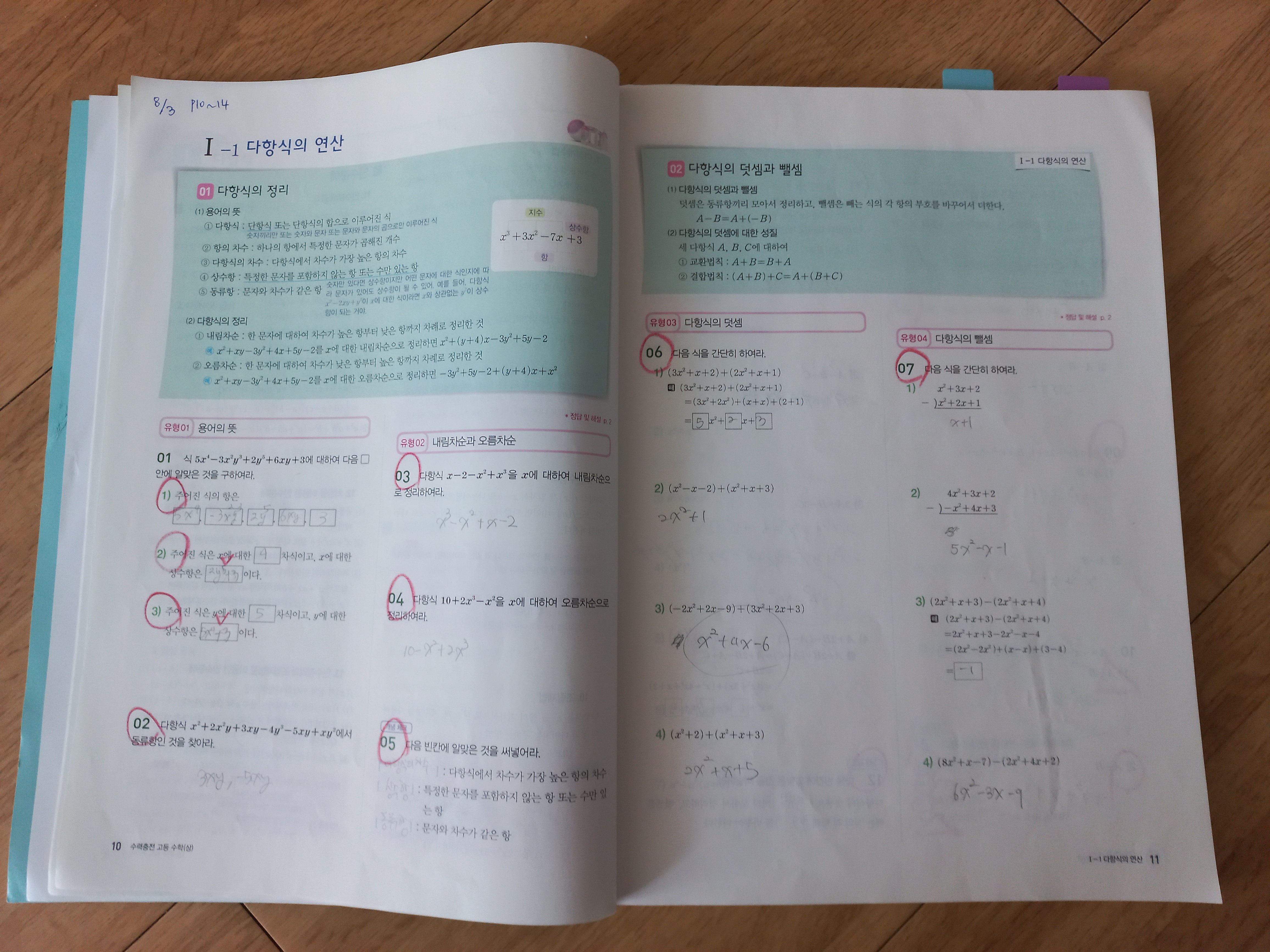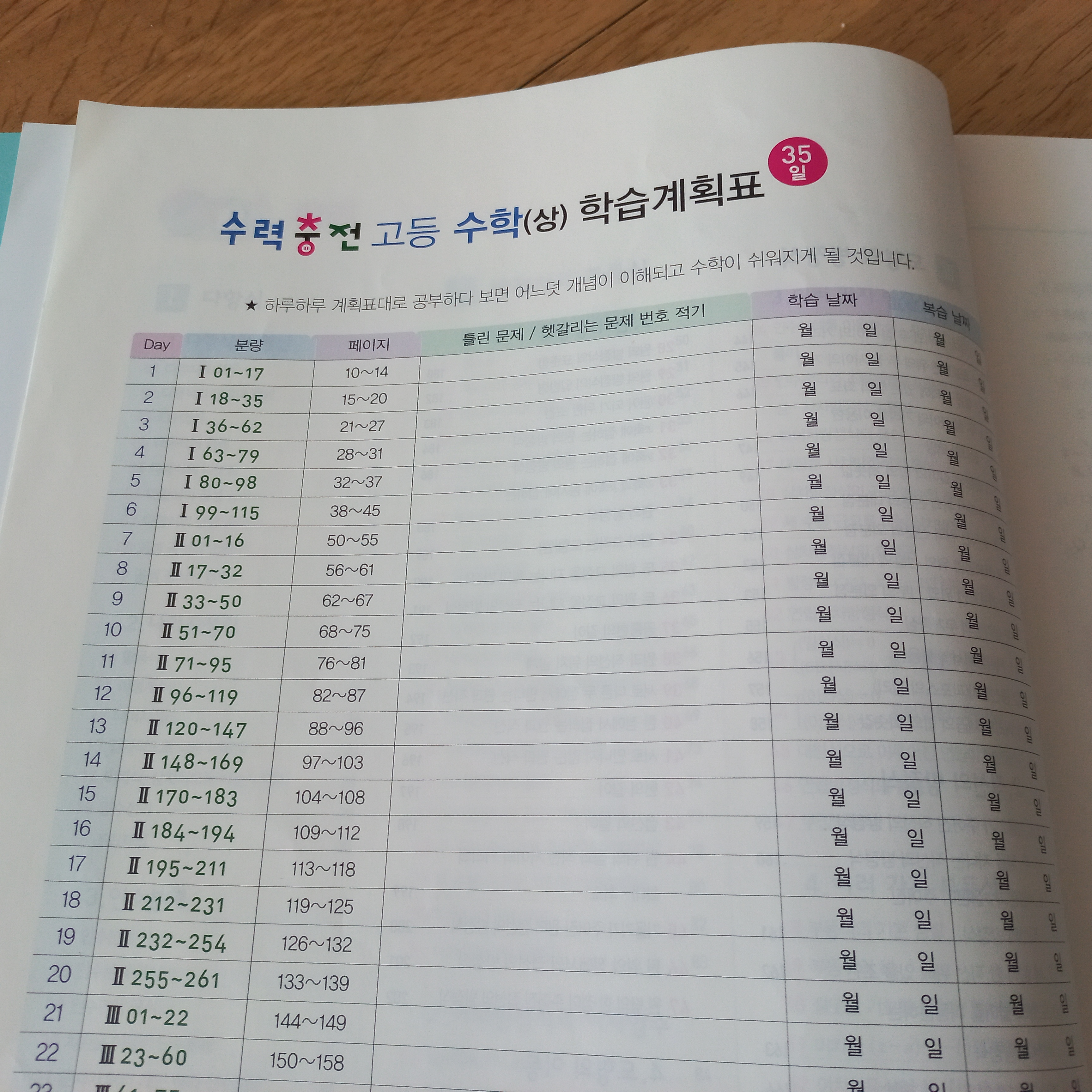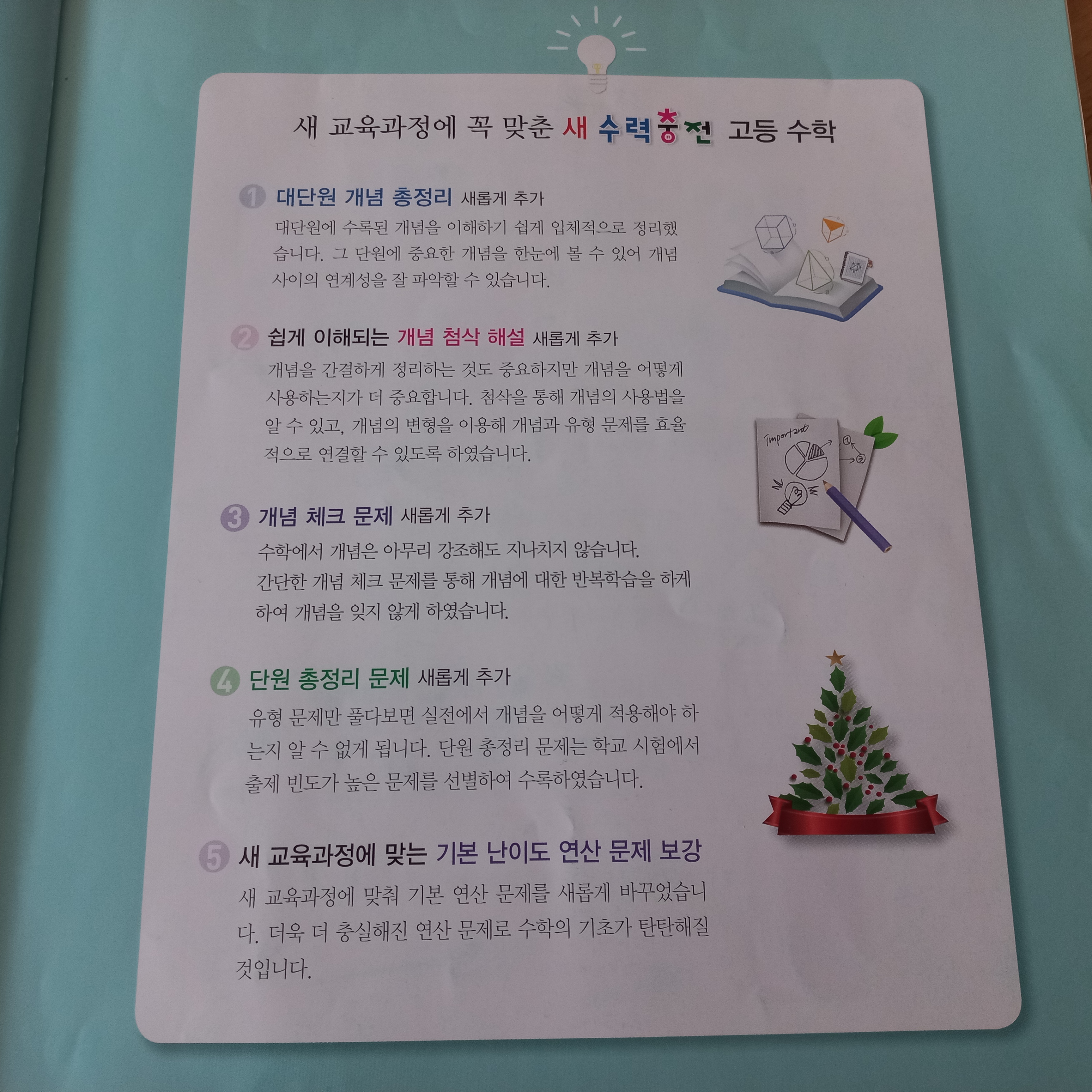 저희 딸 책꽂이에 수력충전 고등수학 (상)이 있어서 물어봤더니 학원에서 진도 나가는 거에 맞춰 혼자 풀어봤다고 하네요 틀린 문제들도 좀 있는데 어렵지 않으니 혼자 해설보고 고칠 수 있었다고 하는데 아~ 이게 수력충전의 특징이자 장점이구나 싶었습니다.
