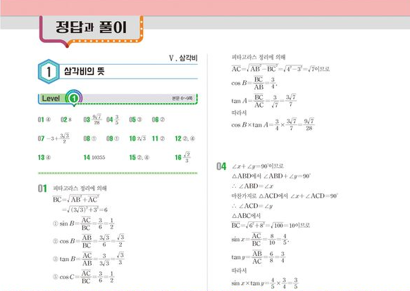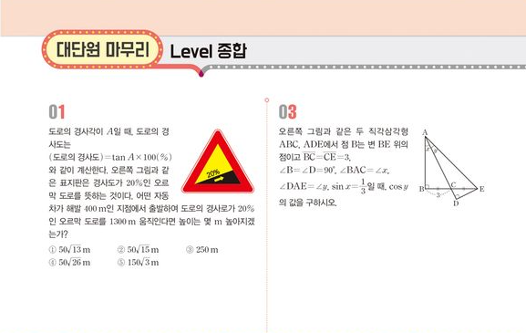 레벨1과정은 쎈수학의 B단계의 난이도 수준의 문제들로 보입니다.