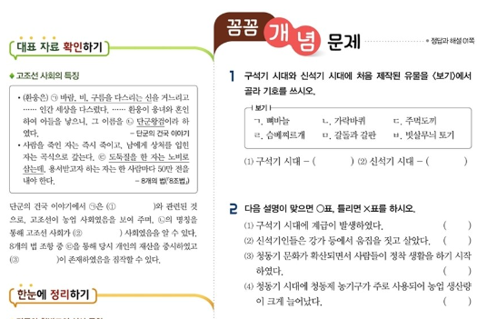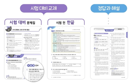 핵심정리, 쪽지시험, 어휘시험, 서술형 문제, 대단원 종합문제로 구성되어 있습니다. 역사는 암기의 영역이라고 할수 있습니다. 전체적인 흐름을 알고 있으면 역사를 이해하는데 도움이 되는데 그런 부분들이 잘 설명되어 있습니다. 한끝 역사를 바탕으로 공부하게 되면 내신 시험 문제는 확실하게 대비할 수 있습니다.