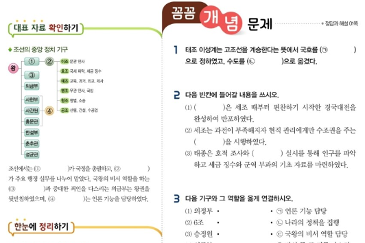 핵심정리, 쪽지시험, 어휘시험, 서술형 문제, 대단원 종합문제로 구성되어 있습니다. 역사는 암기의 영역이라고 할수 있습니다. 전체적인 흐름을 알고 있으면 역사를 이해하는데 도움이 되는데 그런 부분들이 잘 설명되어 있습니다. 한끝 역사를 바탕으로 공부하게 되면 내신 시험 문제는 확실하게 대비할 수 있습니다.