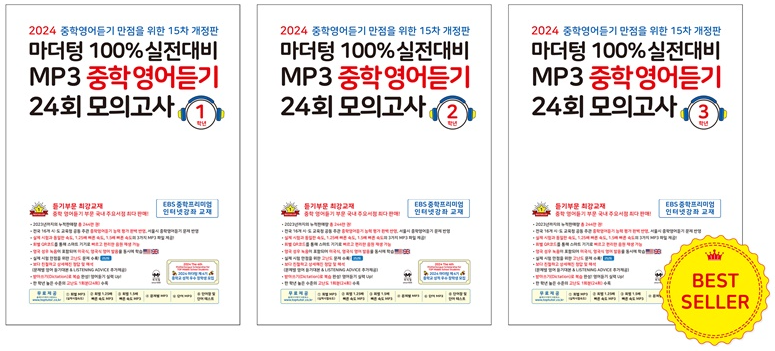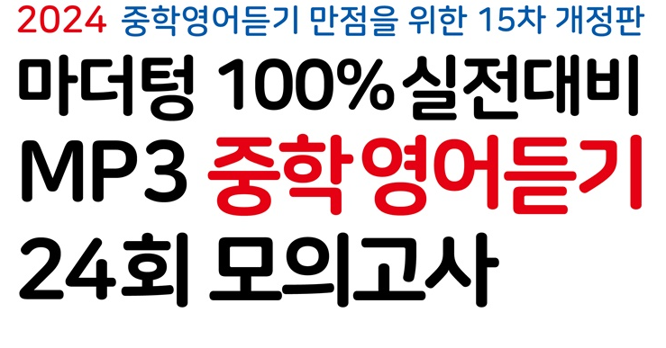 마더텅 100% 실전대비 MP3 중학영어듣기 24회 모의고사 1학년, 2학년, 3학년 (2024년) 교재 리뷰와 답지입니다.