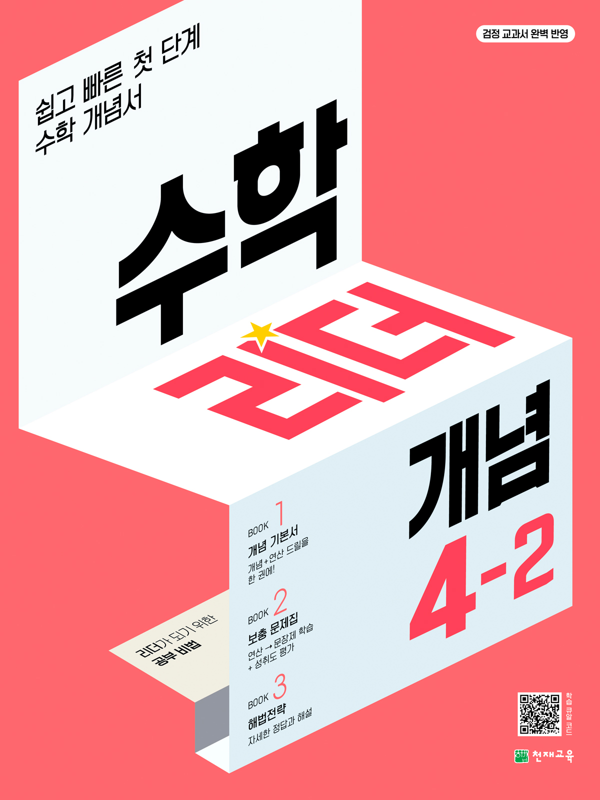 「수학리더」 시리즈 『연산』, 『개념』, 『기본』, 『기본+응용』, 『응용·심화』 중에서 교과서 개념을 익히는 가장 쉬운 단계의 첫단계 개념서이다. 개념을 이해하는 쉽게 기초력, 이해력 문제들과 연산드릴 문제도 함께 수록하여 방학 때 다음 학기 내용을 미리 학습하기 좋은 선행 교재이다. 또한 기초가 부족한 학생들을 위한 학기용 개념서로 활용하기 용이하다