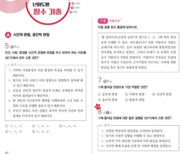 그리고 빈출문제를 난이도별, 빈출 자료별로 구성한 필수 기출을 풀면서 내신을 준비할 수 있습니다.