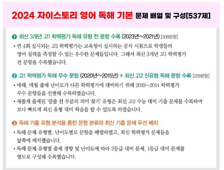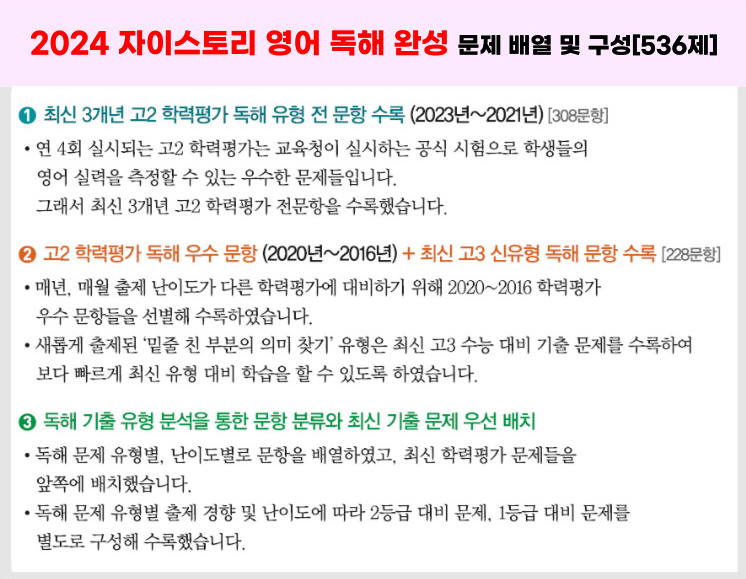 2024 자이스토리 영어 독해 기본편, 영어 독해 완성편
