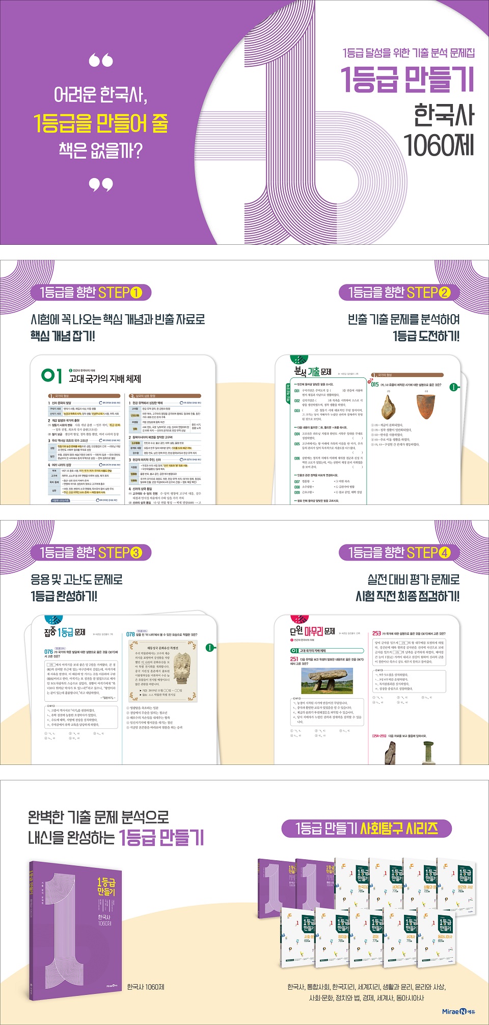 『1등급 만들기 한국사』는 핵심 개념 정리와 다양한 유형의 기출 문제 분석으로 내신에 완벽하게 대비할 수 있는 다문항 문제집이다. 『1등급 만들기 한국사』는 교과서 핵심 개념을 필수 자료와 함께 정리하고, 다양한 유형의 기출 문제를 분석, 적용하여 익히면서 실력을 다질 수 있도록 구성하였으며, 자세한 오답풀이로 문제 해결력을 기를 수 있도록 했다.