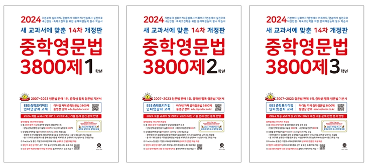 2024 14차개정판 중학영문법 3800제 1학년, 2학년, 3학년 답지 입니다.