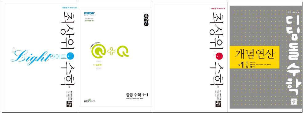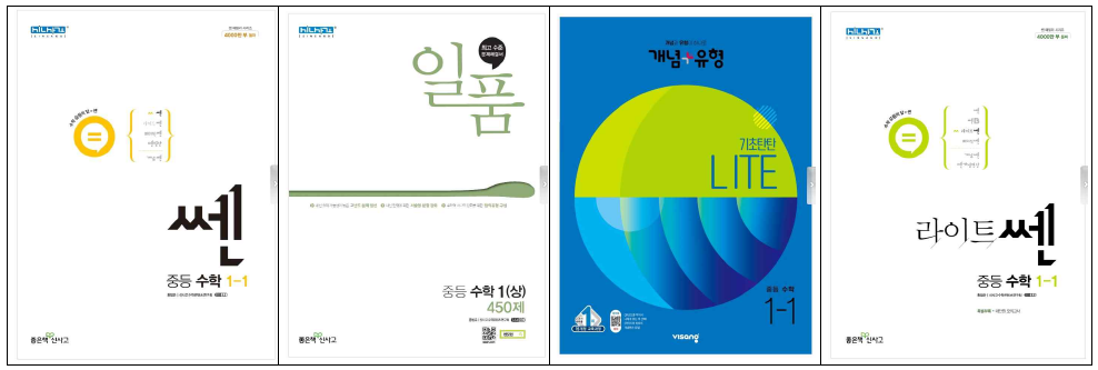 1위~4위 쎈수학, 일품, 개념유형(라이트), 라이트쎈